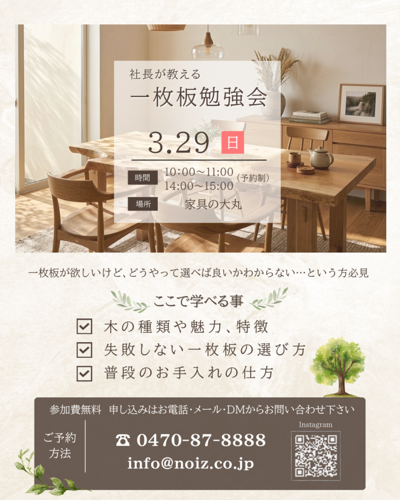 【3/29(日)開催】社長が教える「一枚板相談会」🌳