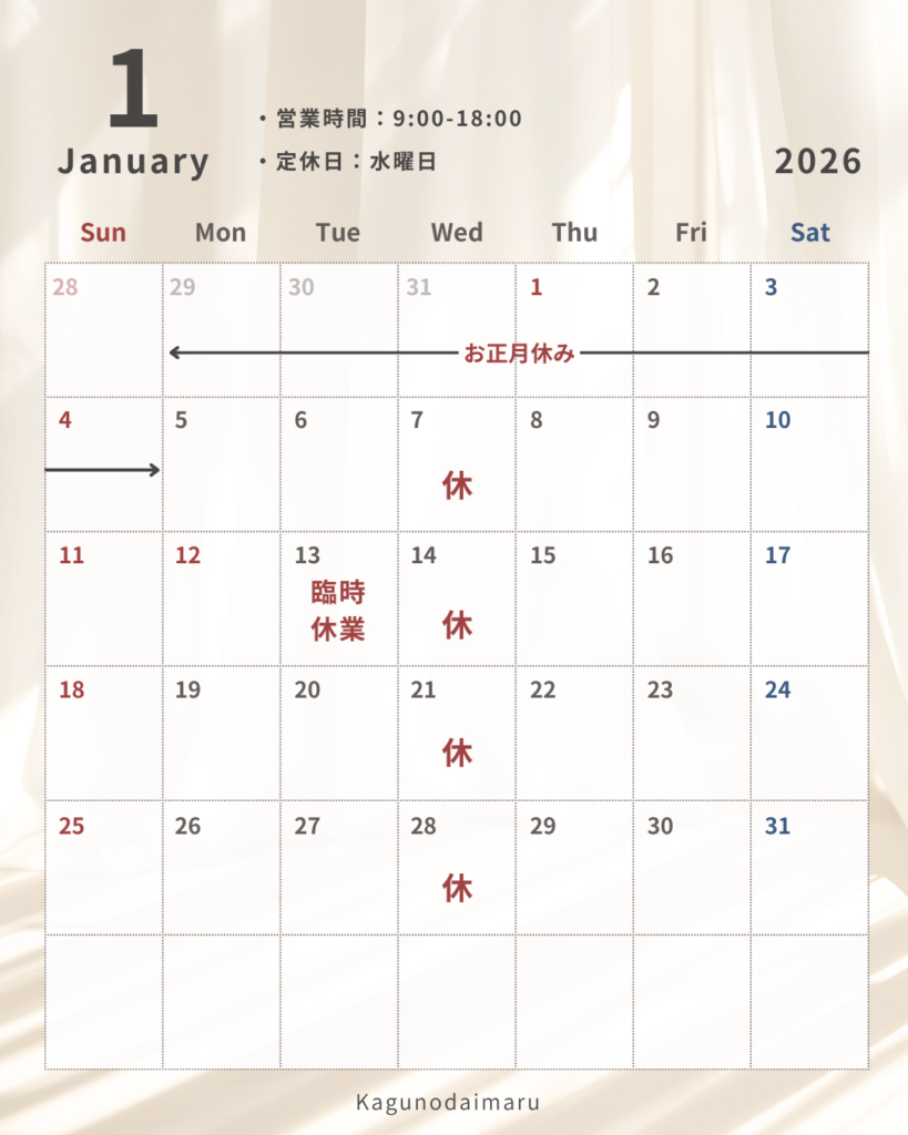 年末年始の休業日は12/29(月)~1/4(日)となっております🎍✨
