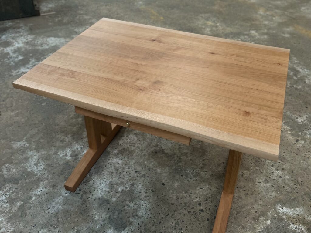 個性ある山桜の一枚板を白のスチール脚でテーブルにしました。個性的なパーソナルデスクとしてもおすすめです。