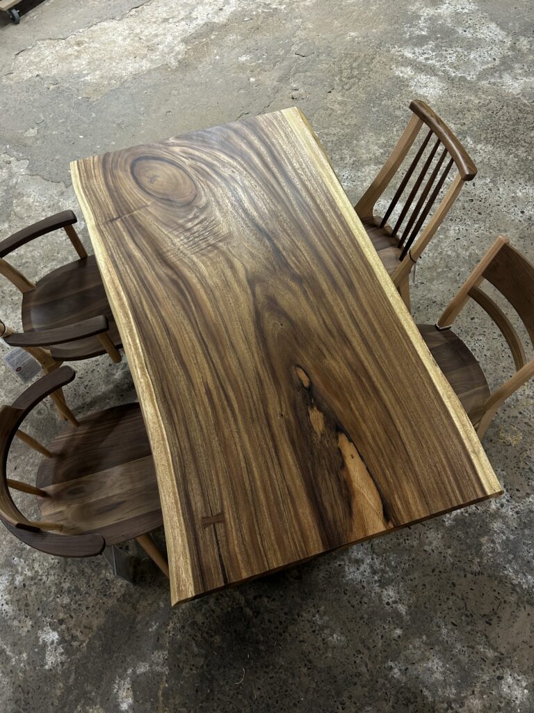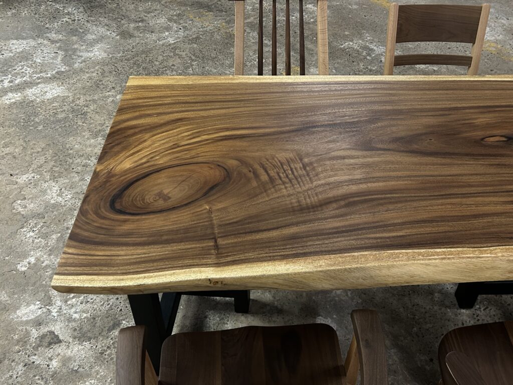 深みのある色味とはっきりとした木目が魅力のモンキーポッド。 明るい辺材とのコントラストが美しく空間に個性を与えてくれます。