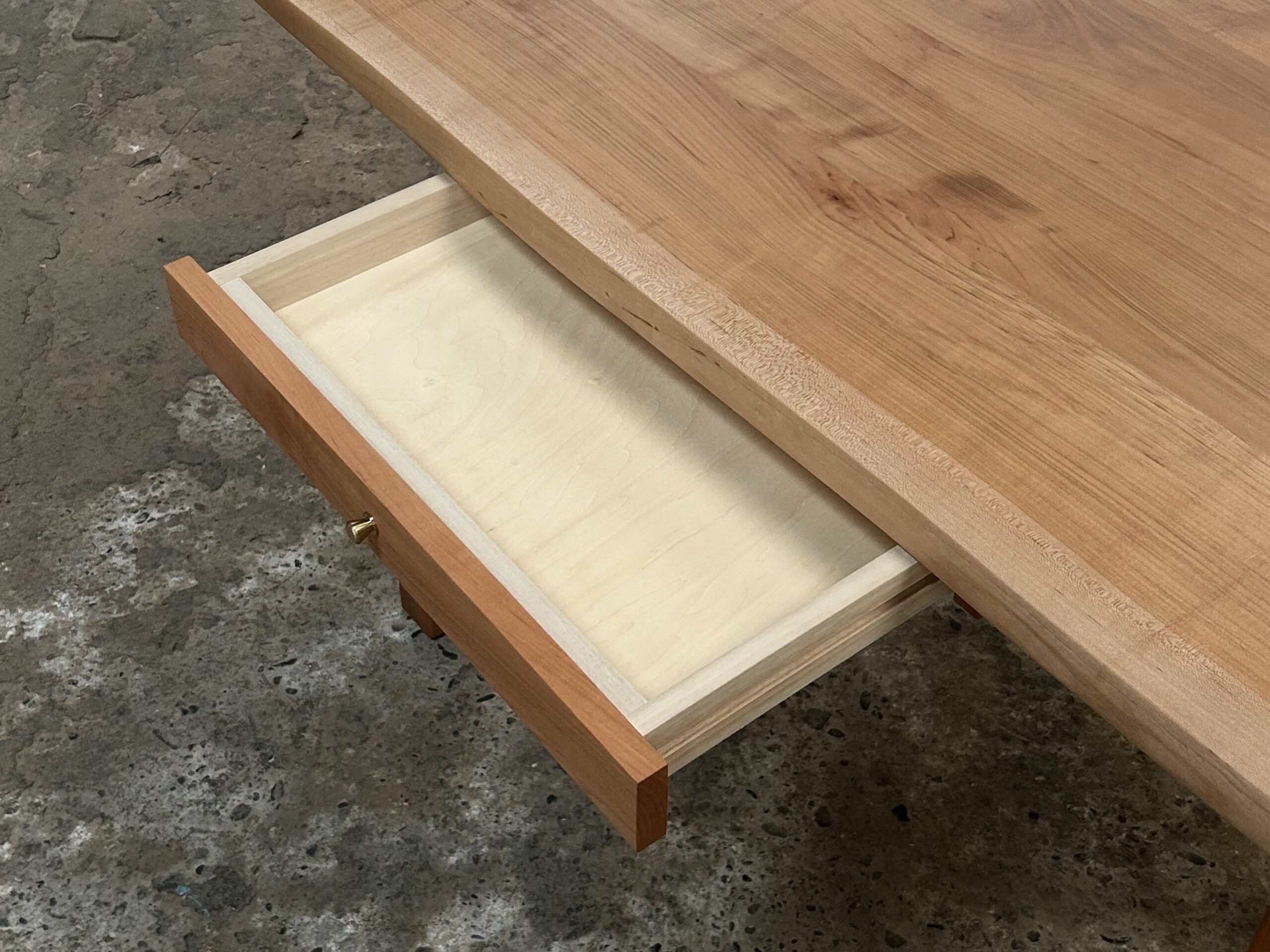 両側に設けられた引出は、日常使いの小物や文具をすっきりと収納することができテーブル周りを整えることができます。 食事や仕事、勉強など様々なシチュエーションでお使いいただけます。